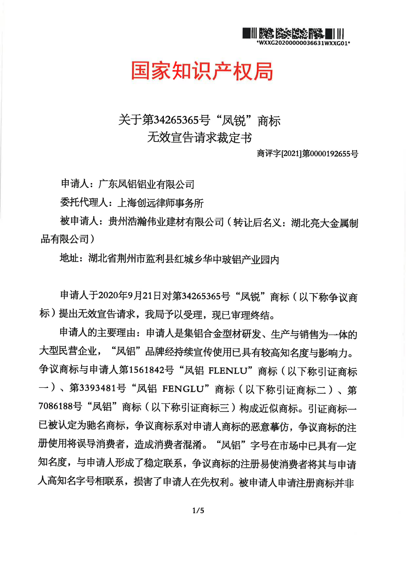 深圳辉知队 | 国家知识产权局:“凤锐”商标无效