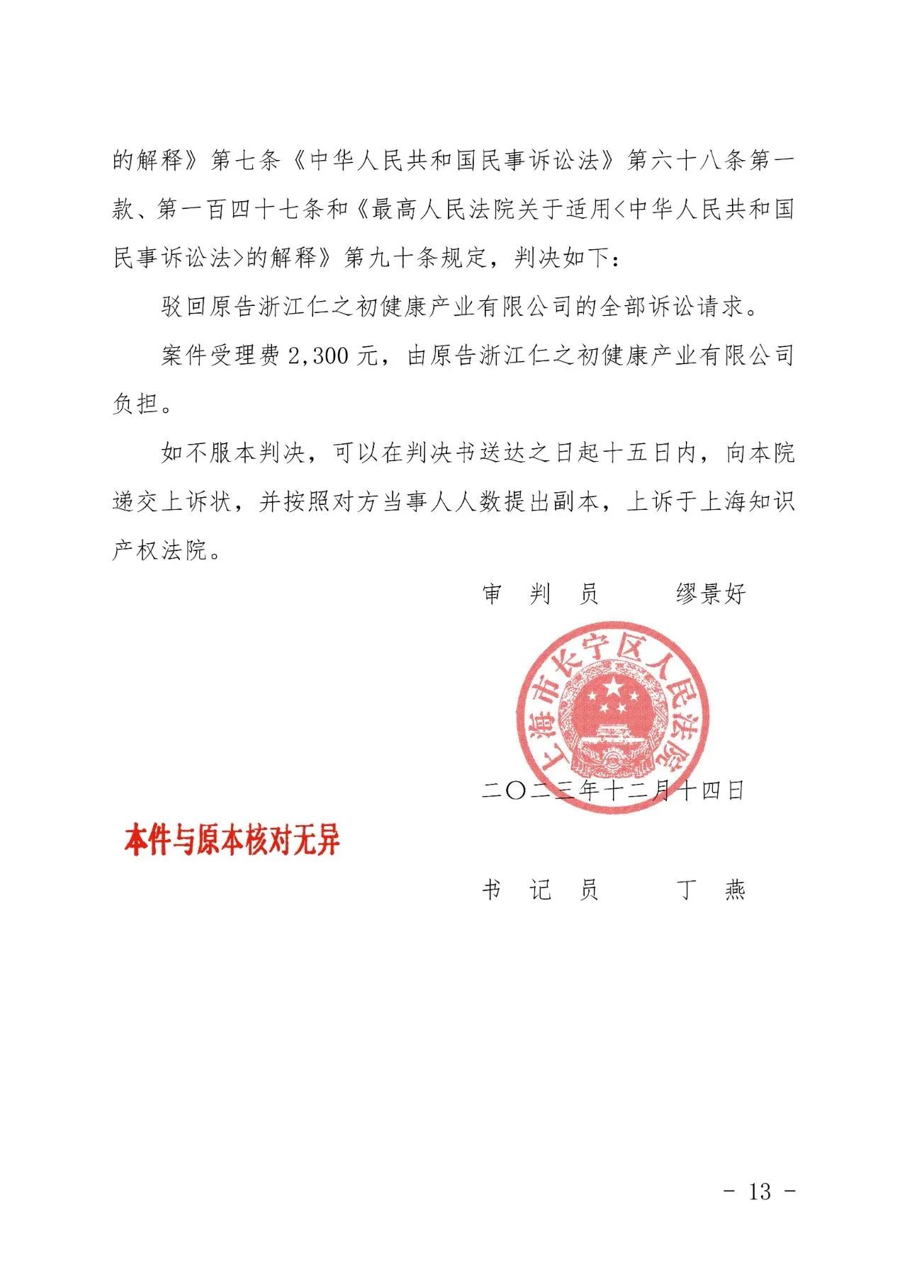 深圳辉知胜诉佳讯 | “仁之初健康”著作权及不正当竞争纠纷案,法院:驳回全部诉讼请求!